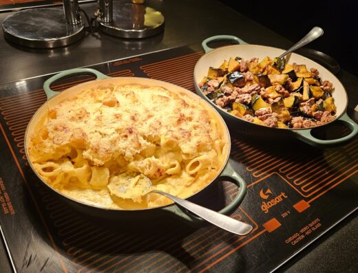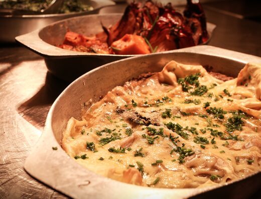 Pedimos ovos mexidos com torradas e um croissant com nozes. Para beber um machiato e um café coado.