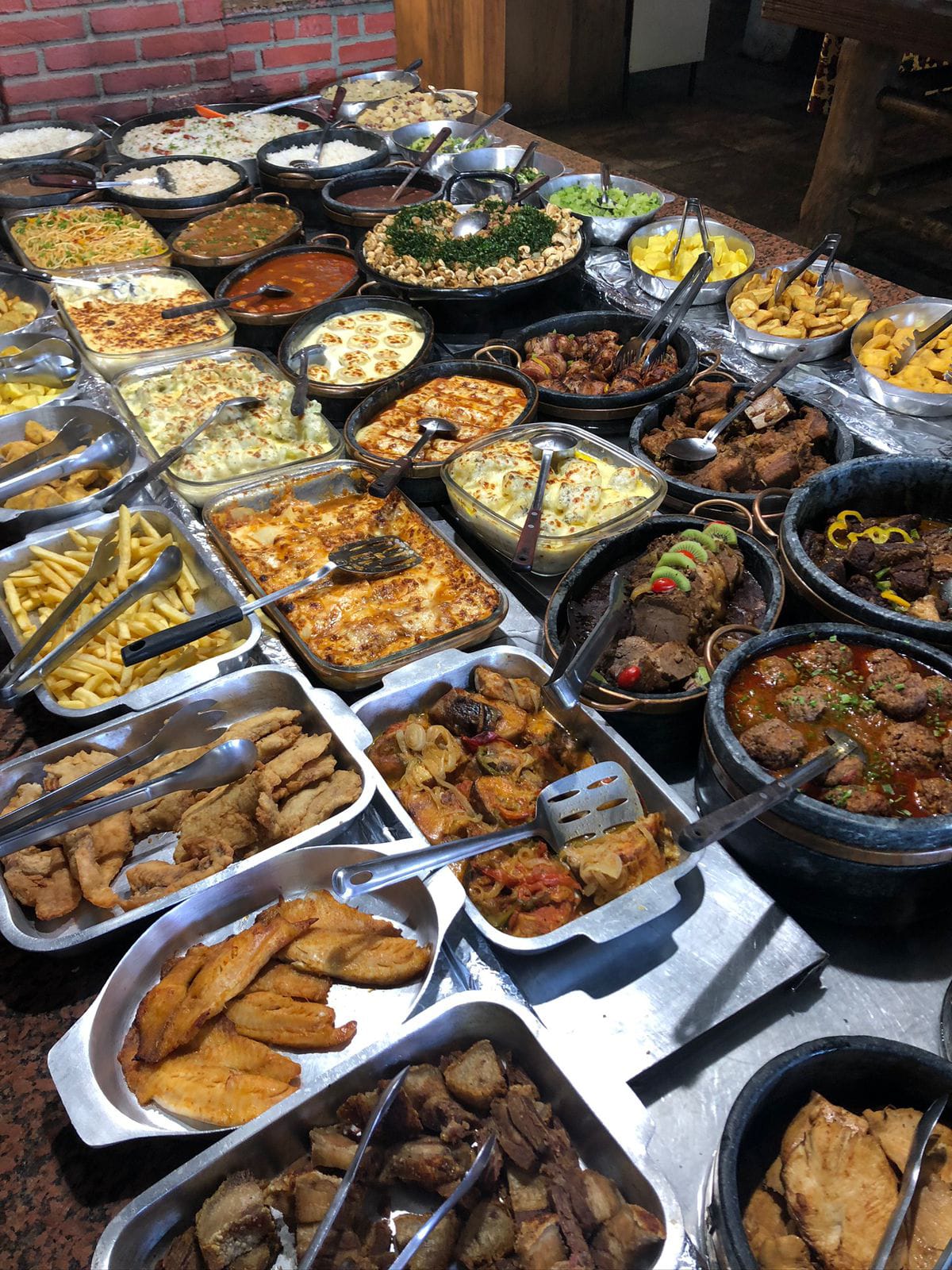 Comida mineira com muita variedade, 90$ o quilo. Fui as 15h e ainda tinha música ao vivo muito boa. Infelizmente pelo horário a variedade no churrasco e o ponto já não eram agradáveis.