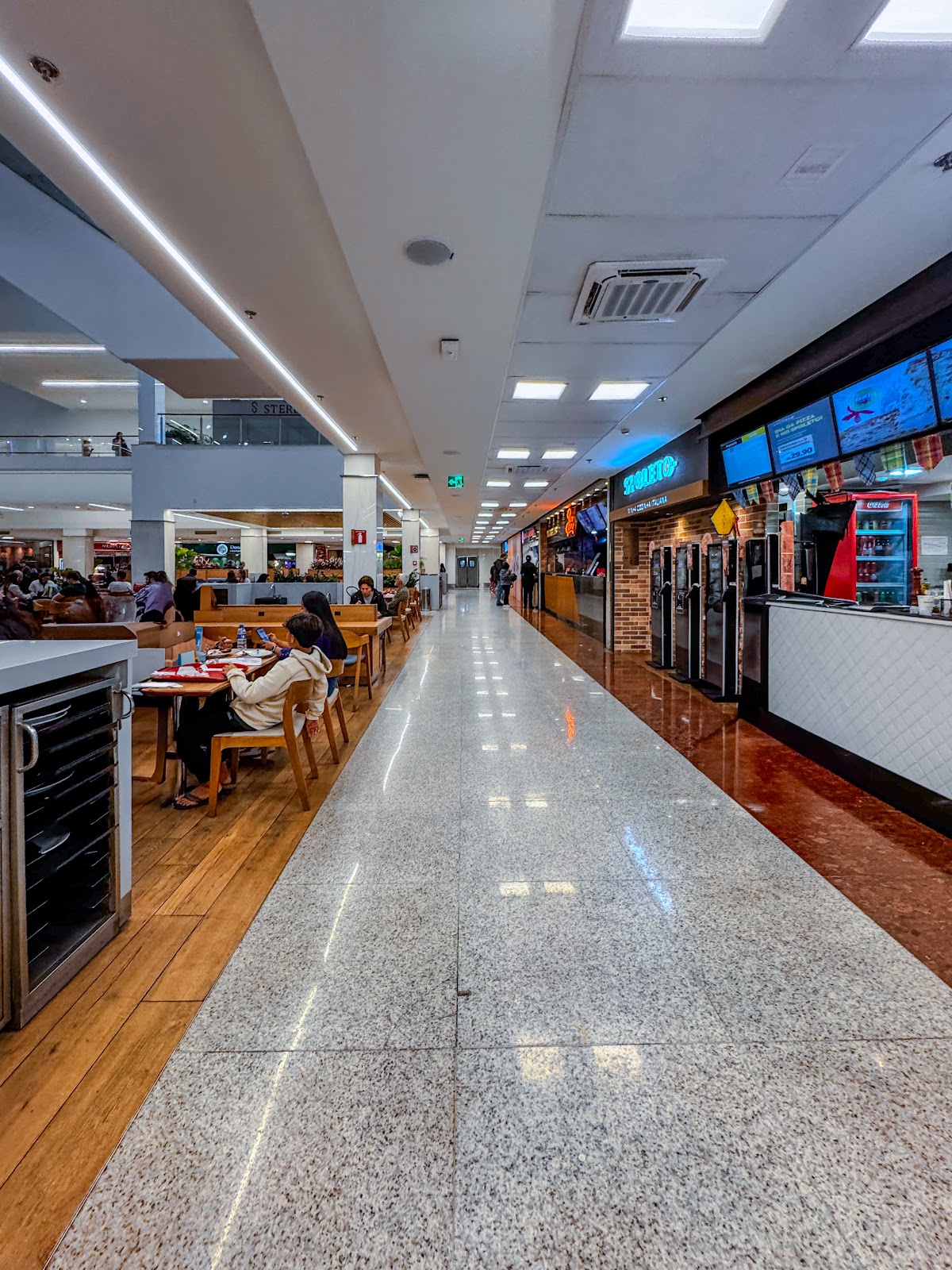 Próximo a hotéis da região é um bom e seguro local para dar uma volta, ir ao cinema ou saborear algo na praça de alimentação.