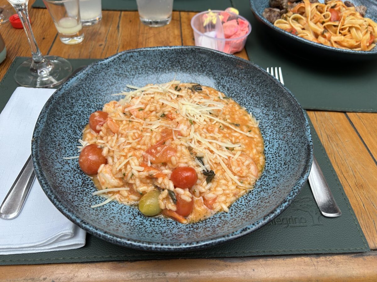 Nossos pedidos: mix de bruschetas (entrada); pratos principais: Steak ao Merlot com Fettuccine Artesanal ao molho Roti Cremoso; e as duas sugestões do chef: Baby beef ao molho de frutas vermelhas e risotto parmegiano e Gnocchi de queijo (empanado!!) com ragu de filé all’arrabiata (picante mas na medida certa para agradar o paladar).