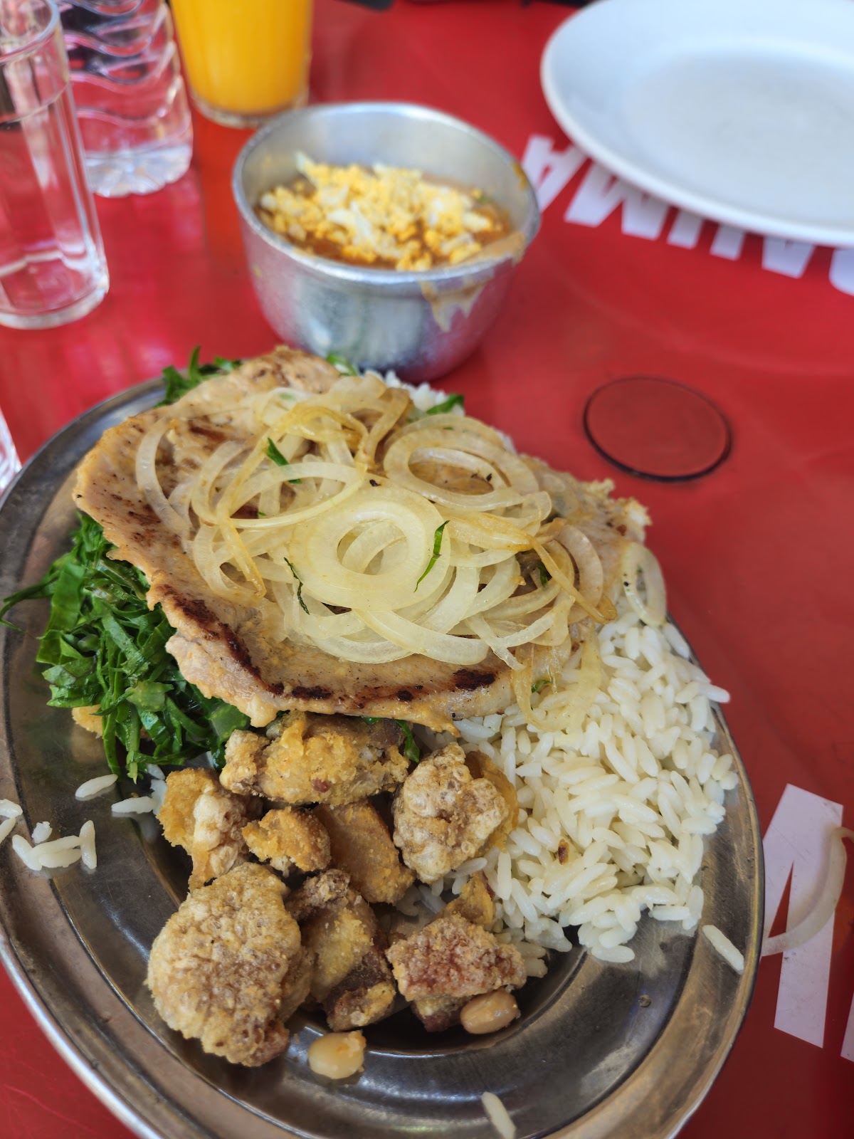 Comida bem saborosa, mas um pouco gordurosa. Local é cheio, mas tem também mesas na área externa que é mais fresco. Pratos vieram meio sujinhos