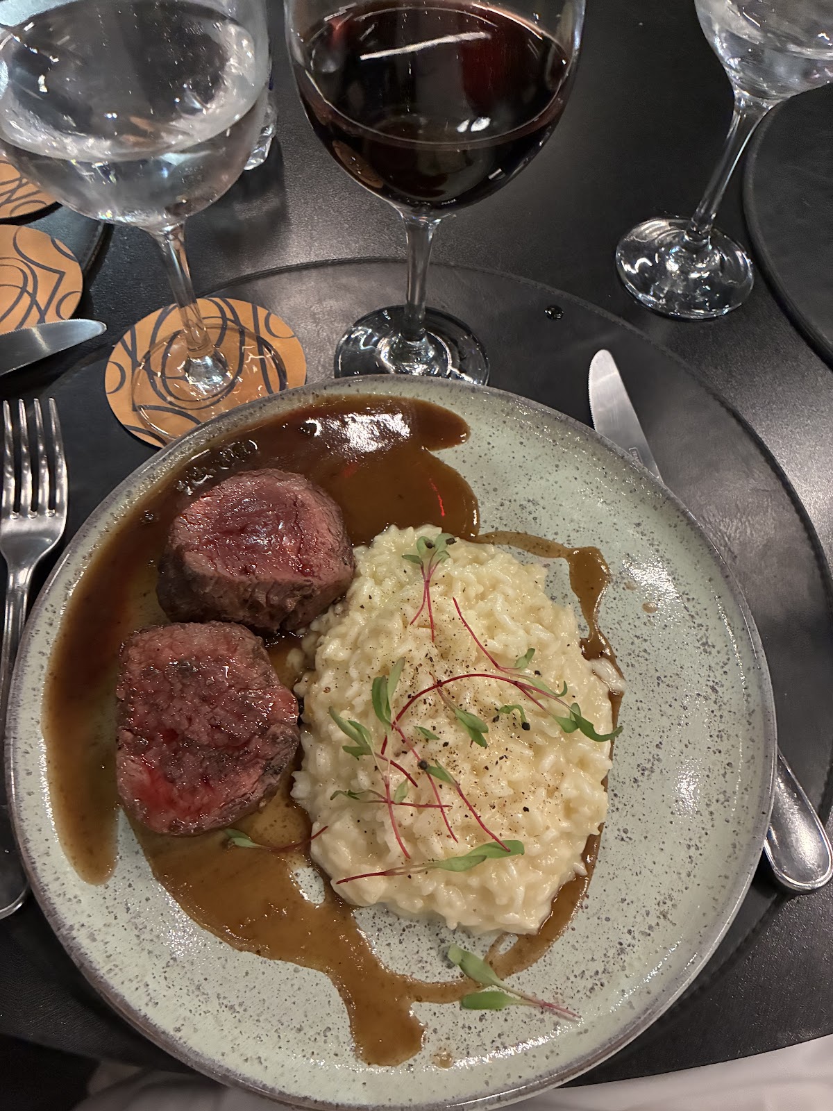 Sobre o prato principal eu nunca vi um risoto de nada tão perfeito com uma textura tão boa.