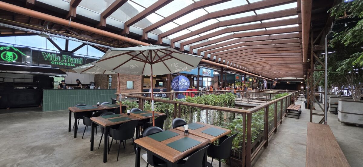 O ambiente é amplo e moderno, com uma proposta interessante que ainda está em desenvolvimento. Muitas lojas ainda estão fechadas, mas já é possível encontrar uma boa variedade de opções — de gastronomia e móveis a arte e até um pequeno museu.