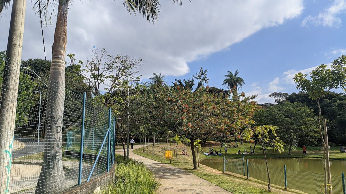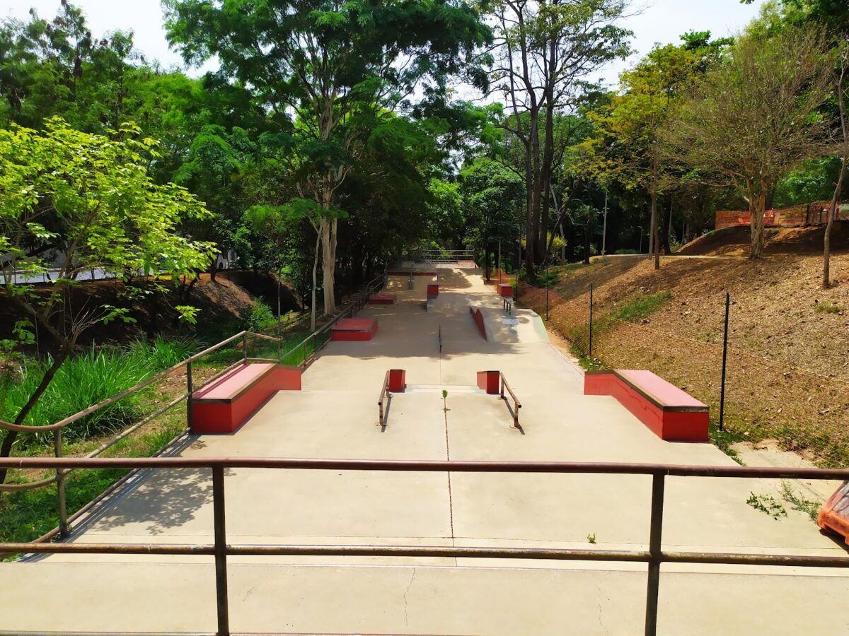 O parque tem também área de skate, quadras, banheiro e algumas trilhas.