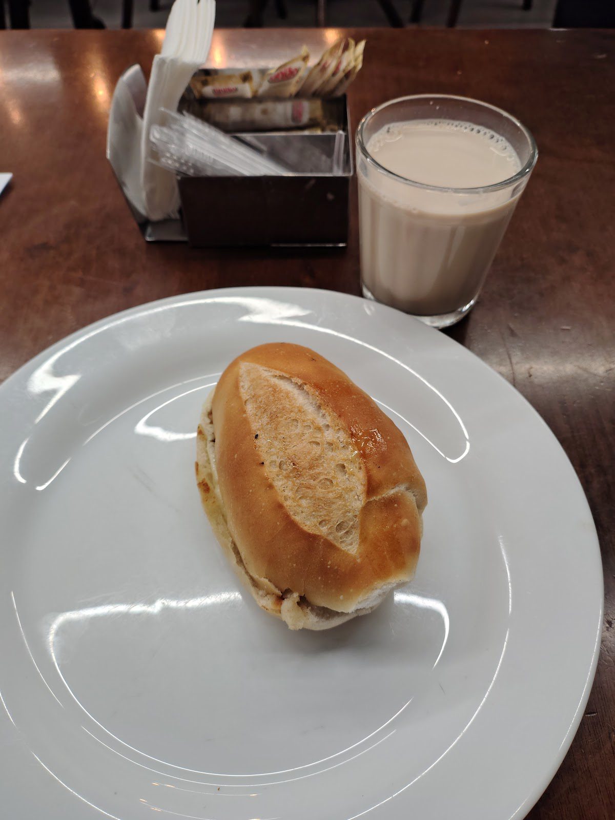 Vim tomar um café da manhã. Fomos ao balcão para pedir e dava para ver que o pessoal não estava em sintonia e entendendo sobre o próprio cardápio do local. Pedimos misto quente, achocolatado, cappuccino e suco de laranja. O achocolatado e o cappuccino estava super gelado com alguns pedaços de leite em cima super esquisito. Pedimos para esquentar e eles não foram contra. O misto quente estava até que bom, bem recheado. O suco de laranja também estava ok. Acho que é dias e dias!