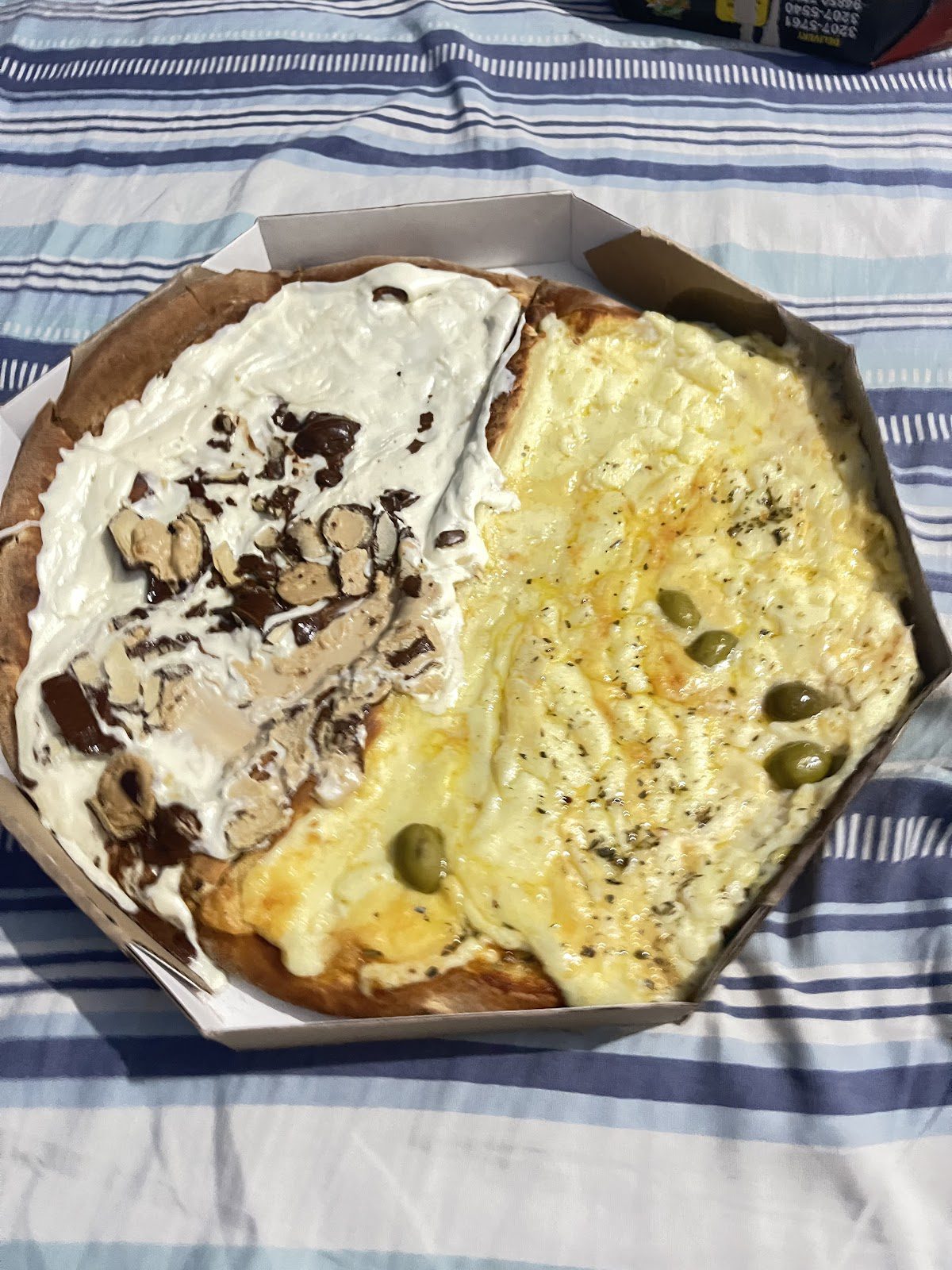 Experiência péssima, pizza chegou nesse estado e pra piorar o frango está com gosto de estragado.
