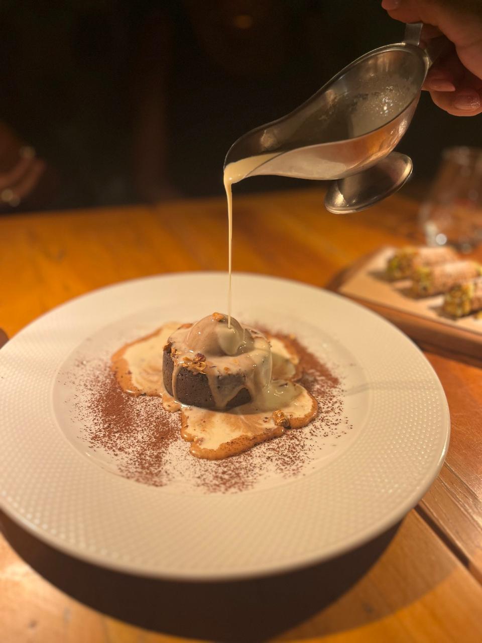 E para fechar, a sobremesa chocolatuda torta caprese encerra a experiência com intensidade e equilíbrio, sem ser enjoativa — simplesmente irresistível.