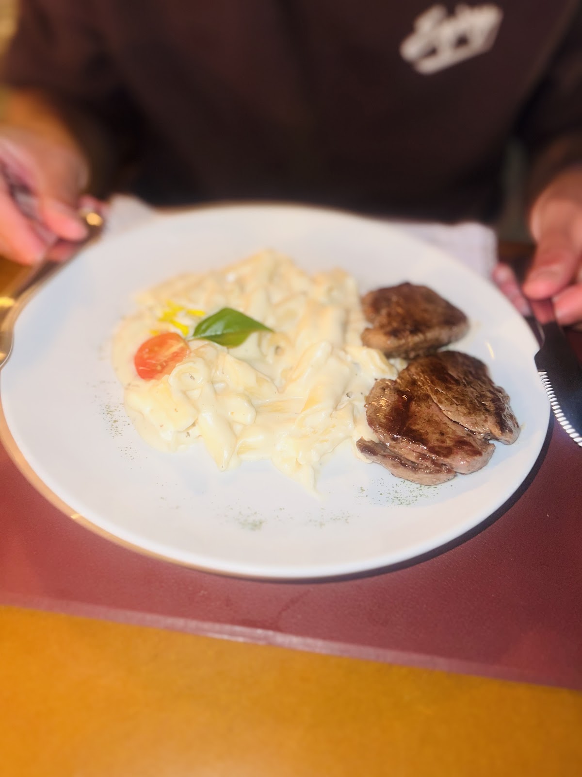Pedimos um carpaccio que sem sombra de dúvidas foi o melhor que já comi, cerveja Krug light zero beeeeem gelada em seguida um risoto pomodori, quente (isso é importantíssimo) bem temperado, arroz ponto bem macio e o filé no ponto perfeito, acompanhado de um bom vinho português (indicação da Cris), finalizamos com uma chees cake de frutas vermelhas impecável. Falando de atendimento, não poderia de tecer elogios às excepcionais Cris e Ana que tornaram a nossa noite melhor ainda, com um atendimento espontâneo, prático e sempre dispostas com um sorriso no rosto.