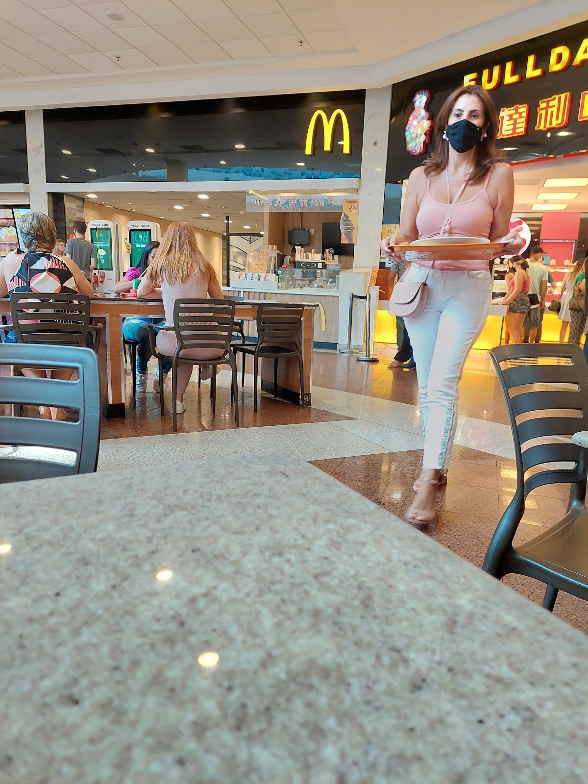 2- praça de alimentação e muito pequena, é estava muito cheia pelo que percebi lá é tudo self- service não vi garçons. Se você é desastrada que nem eu tome cuidado pra não derrubar tudo no chão ou nos outros kk. 😉